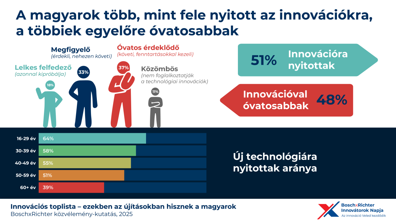 A közlekedés és a gyógyszeripar jövőjével foglalkozott a magyarországi Bosch csoport és a Richter Gedeon Nyrt. "Innovációs toplista: ezekben az újításokban hisznek a magyarok" című kutatása, melynek friss eredményeit a BoschxRichter Innovátorok Napja konferencián mutatta be közösen a két hazai nagyvállalat 2025. szeptember 23-án a Bosch Budapest Innovációs Kampuszon.